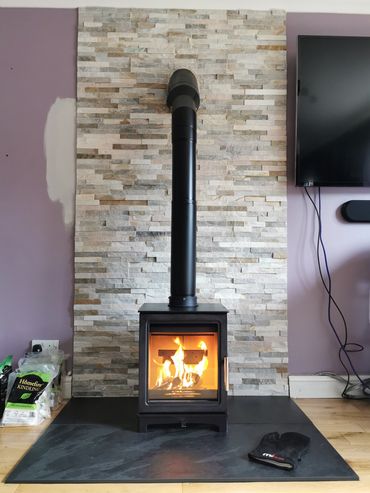 We will cut (shape) and lay your choice of stone hearth from the selection below and continue with the installation of your stove and flue system. We will then finally sign the job off with a HETAS certificate.