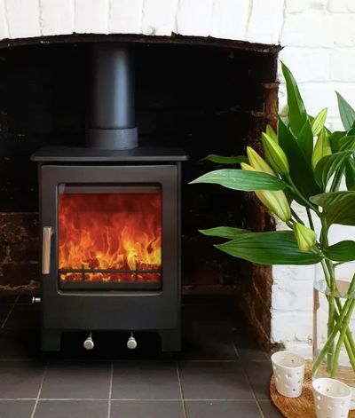 The Lowry, Ecodesign 2022 ready, Multi-Fuel stove - from Woodford Stoves - is the perfect size for most homes, This 5kw room heater has a thick gauge, steel body and a modern, smooth, cast iron, door with large viewing glass that is kept clean by an efficient cleanburn system. It's Ecodesign ready so as to meet all the requirements of the new clean air rules in force from, 2022 and it is also Defra approved for burning wood, in smoke control areas. The Lowry, has a lifetime warranty on the body itself and is easy to control and easy to clean with it’s built-in riddling grate and ashpan.